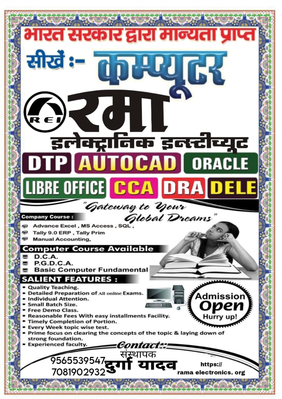 Welcome to RAMA ELECTRONIC INSTITUTE, a premier computer coaching institute dedicated to empowering students with essential digital skills. Our mission is to provide high-quality education in computer literacy, programming, software applications, and advanced IT concepts. Whether you are a beginner or looking to enhance your expertise, our well-structured courses, experienced faculty, and hands-on training ensure a comprehensive learning experience.